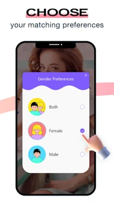 - You can customize your matching preferences by choosing the region and who you want to meet with, swipe the screen and match someone within a few seconds.