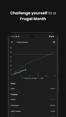 Frugal Months: Want a challenge? Push yourself to spend less than the limit you set in a given month. Notifications help you stay updated and on track all month.