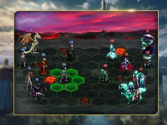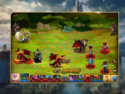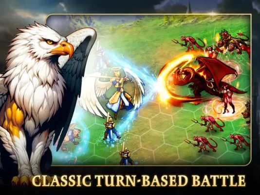 Choose from 23 heroes, each with unique abilities, to develop your strategy and conquer the magical world. Prepare for arena battles in turn-based strategy games.