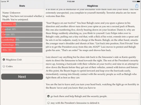 "Magikiras" is a 1,100,000-word interactive novel by Gabriel Chia, where your choices control the story. It's entirely text-based--without graphics or sound effects--and fueled by the vast, unstoppable power of your imagination.