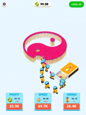 • Craft objects • Burn objects • Multiple levels • Multiple objects • Night Mode • Tap Tap to speed up the process • Earn by placing each match stick • Hire more workers to create faster It’s time to play and craft new sculptures and see them light up to your satisfaction level.