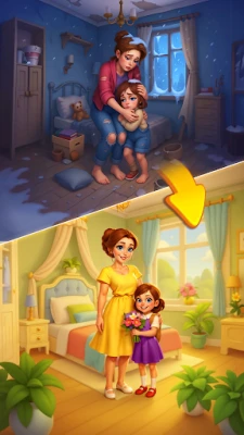 The mystery mansion is not as sweet and fun as it seems. There is some dark magic going on in the villa and you need to solve this puzzle. Flip the story upside down, escape your evil competitors, and decorate room after room in our decor game. Your designing contribution to the house games matters!