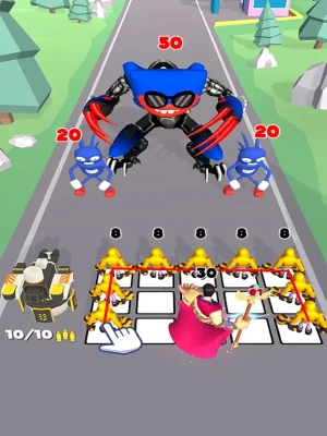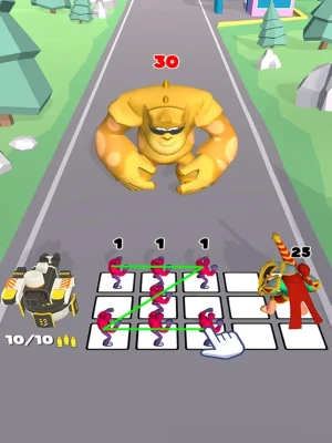 HOW TO PLAY - Match two similar heroes to unlock new mighty warriors - Arrange them wisely on the map to gain advantages - Prevent monsters from entering your town. You lose if you let them cross the line and kill your whole team. - Earn coins after each level and use them to add more soldiers to your team - Upgrade the gun machine - it will give you an edge in battles