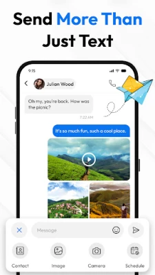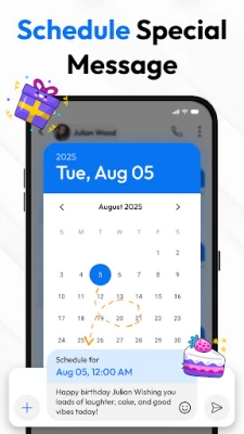 ✔ Schedule Messages – Set reminders or greetings to send later. Perfect for birthdays, work updates, or personal notes.