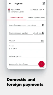Simply send the transfer payment order to any counter-account. You can use all your payment templates from the internet banking MojeBanka or simply scan a QR code to process a payment.