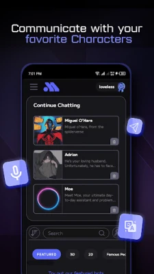 - Lifelike voice chats: Enjoy hands free virtual character conversations.