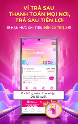 Thoải mái mua trước, trả tiền sau với Ví Trả Sau - lãi suất 0% lên đến 45 ngày.