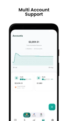 Manage cash, bank accounts, credit cards, and savings in one dashboard.