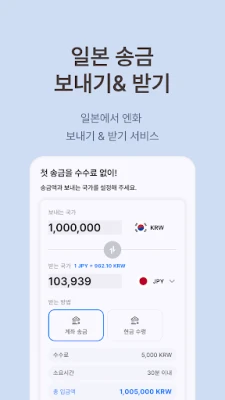 한국에서 일본으로 은행계좌 및 캐쉬픽업 송금