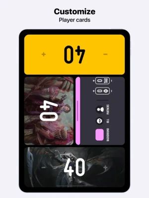 Swipe up or down on player cards to access a full suite of customization options. Set custom backgrounds, enable partner commanders, and manage players directly from their cards. Share your favorite profiles across devices, and when a player falls in battle, bring them back with our streamlined revival system. Plus, add some salt to defeat with customizable defeat messages!