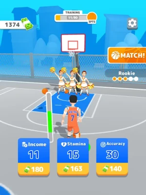 Upgrade your basketball skills in training mode, compete with opponents in the court and be the top scorer of all time!