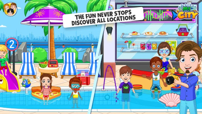 * Discover non-stop fun, create all sorts of stories and stretch the limits of your imagination here in My City: Hotel where your virtual family awaits!