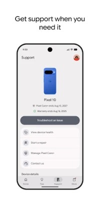 Find solutions to issues with your devices in the Support tab. View all your Made by Google devices in one place and access the help you need to: