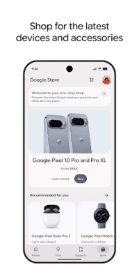 Shop and track orders in the Store tab. Ready for an upgrade or a new look? The Store tab brings the Google Store experience directly to the My Pixel app.