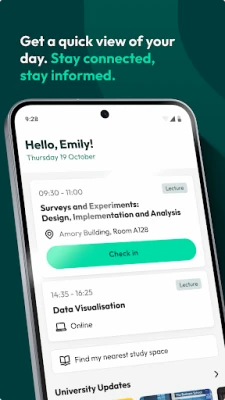 Receive in-app University information and updates from teams around the campuses. Get only the news that is relevant to you. At a loose end? Visit the events tab to see the wide range of events taking place off and on campus.