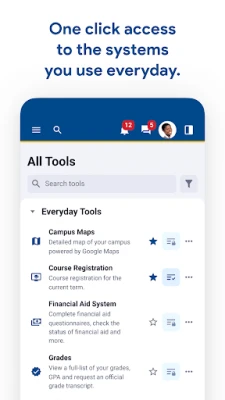 - Access class schedules, financial aid, Canvas, registration, DegreeWorks, email, work orders and other everyday systems