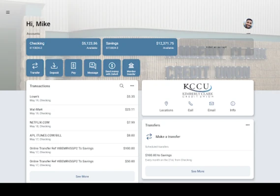 To use the MyKCCU app, you must be enrolled as a Kimberly Clark CU digital banking user. If you currently use our Internet Banking, simply download the app, launch it, and login with the same Internet Banking credentials.