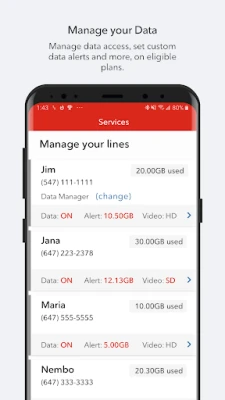 All customers on a Shared plan get even more from the MyRogers app! • Top up data before you run out and pause data access for any line • Monitor your data usage in real time • Set customizable data alerts for each line • View your bill and make payments