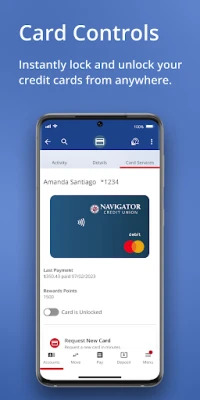 • Instantly lock and unlock your Navigator cards from anywhere
