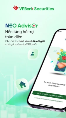 NEO Advisor là ứng dụng được xây dựng chuyên biệt cho đội ngũ Chuyên viên tư vấn của VPBankS và lực lượng bán hàng của các đối tác để thực hiện các tác vụ hỗ trợ khách hàng giao dịch, tư vấn đầu tư, quản lý hồ sơ khách hàng và theo dõi hiệu suất công việc.