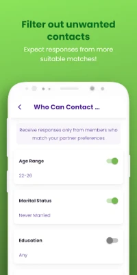 Premium “Who can contact me” feature will give you peace of mind to receive responses only from suitable matches whose details match with your preferences. With this feature you can set conditions such as age range, marital status, mother tongue, education and residing in.