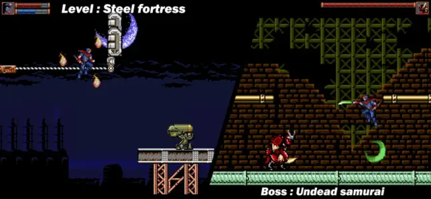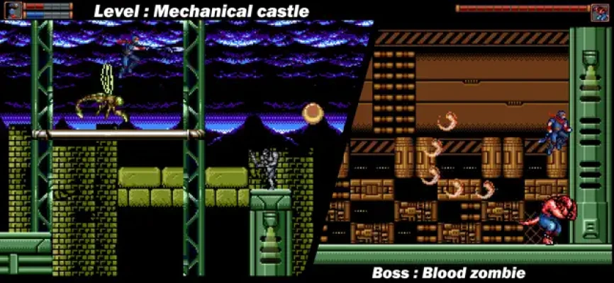 1 Gameplay: Classic 2D platform action game, the super ninja hero can walk, jump, climb and attack the enemy on various terrain platforms;