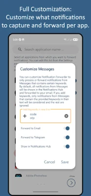 - Automatic Forwarding: Seamlessly forward incoming text notifications containing certain keywords to your preferred email address or Telegram account. No more missed messages, whether you are at your desk or on the go. This app automatically transfers the incoming notifications from the apps you select to your email and Telegram as soon as they are received.