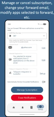 - Reliable Performance: Works flawlessly in the background, ensuring that all your important notifications are forwarded without any delay. Subscribe to the app, set up the forwarding email, link the app with Telegram, then select the apps you want to forward notifications from, ensure your device has a reliable internet connection, leave your phone, and don't worry about missing any notifications anymore, wherever you are.
