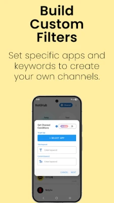 ✔️ Custom Notification Channels: Filter notifications by specific apps or keywords to see only what matters.