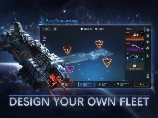 Select wisely among various warship blueprints. Forge your unique fleets with modular designs and assembling systems. Plan out your strategic options carefully and join in unprecedented space battles. Your choice will affect the outcome of every battle you’ll fight in.