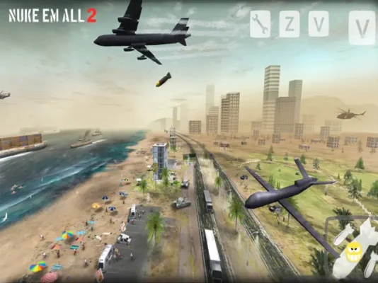 Your mission is to destroy Everything scattered across the landscape! Kill everyone on the TOP SECRET hit-list, which is updated month to month! Drop Nukes to wipeout a larger area and become an accurate bomber to kill and cross off people on your most wanted list! You can also rescue some VIP commandos scattered across the desert terrain...