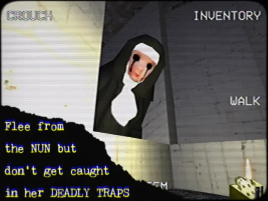 Do you have the courage to survive a terrifying night of hide and seek with a HOMICIDAL NUN? Discover the secrets of her nightmarish lair and escape with your life! NUN MASSACRE is a stealth horror game with 5th gen graphics, inspired by the classic Playstation 1 era. Pick your preferred image format - VHS, black & white or psx - and explore multiple endings and secrets while you try to survive the night!