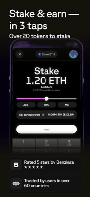 Put your idle coins and tokens to work and earn yields directly inside Omni. Stake, lend, or deposit your digital assets into yield vaults to collect high APR rewards. The streamlined flow helps you start earning in just three taps. Plus, you can withdraw your crypto any time, no questions asked.