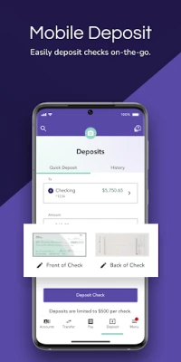 - Deposit Checks on the Go with mobile check deposit—no ATM required!
