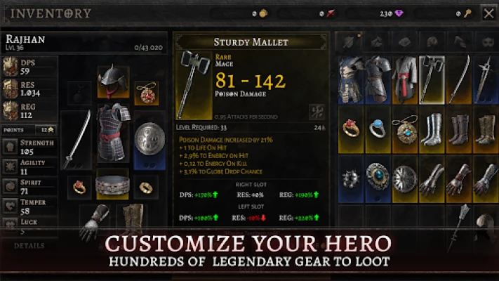 The game can be played totally for free. Some in-app purchases are available for the ones who want to unlock extra features and that want to support the development of this new Action RPG for Mobile Devices!