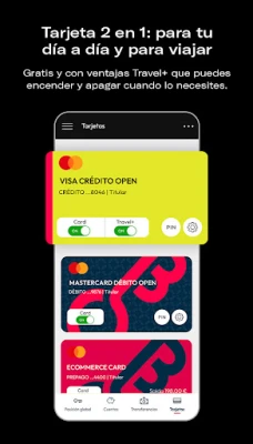 • Apaga y enciende tus tarjetas temporalmente por ubicación y por uso. Por ejemplo, elige si la quieres usar solo en ciertos países o apagar su uso en cajeros.