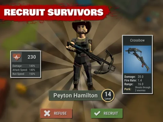New survivors will hear of your accomplishments with the zeds and may want to join your group. They will bring a weapon with them and will often have improved stats when compared to the survivors in your group. Careful though because you can only support a limited number of survivors so you may have to make a difficult choice.