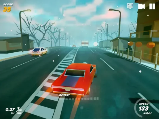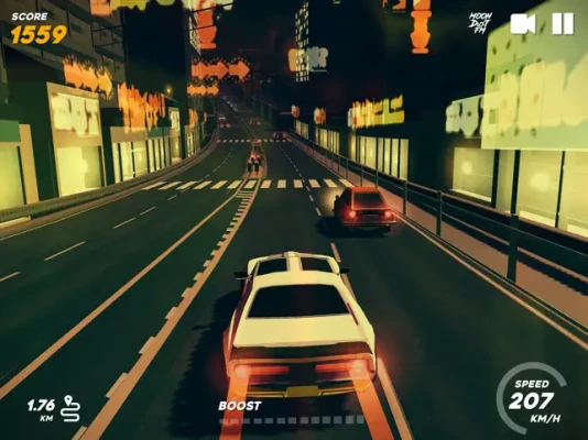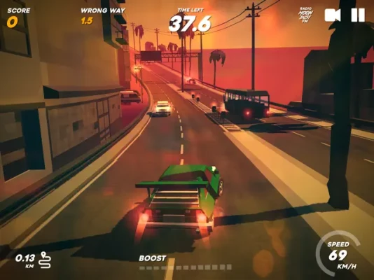 - Cool boost mechanic that allows you to mow down thru the traffic when boost is full - Drive through megacity nights, sunny beach drives, mountain drives.. list goes on! - Radio channels with synthwave, electro and lofi house bangers! - Level up and buy more cars, upgrade your whips and unlock more stages. - Simple and mobile optimized gameplay