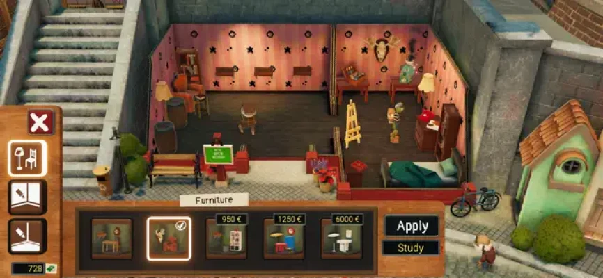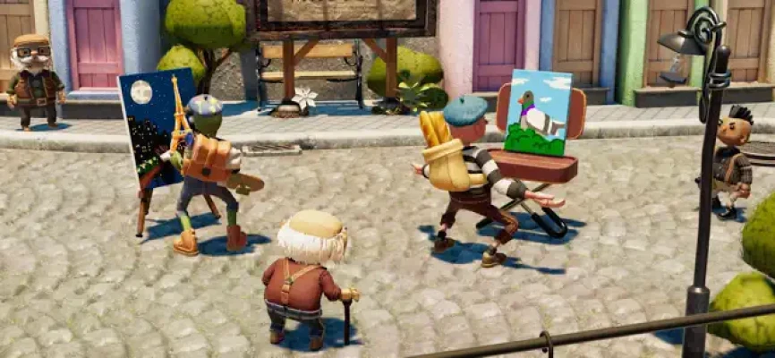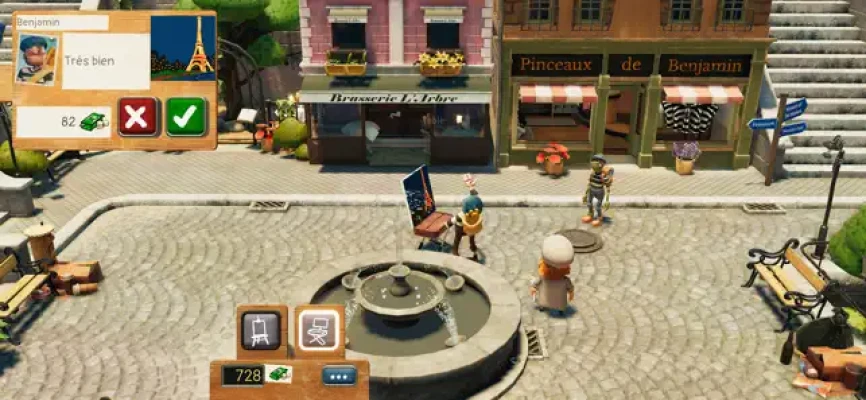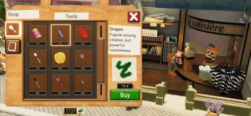 Take your art on the go with your handy foldable easel. Explore the charming puppet town of Phénix, get to know its residents and what makes them tick. Help them out with commissions, like drawing a new ad for Steve's restaurant! Or why not buy a studio so you can work from home, just like the good old days? Earn Fancy tools