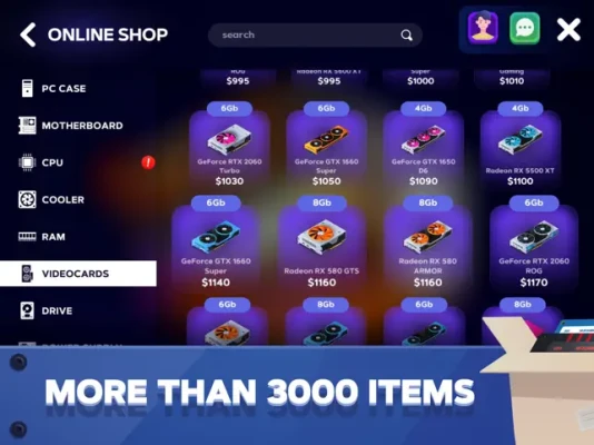 If there are a lot of computer parts in free “PC Creator”, but now there are thousands of real PC details. A lot more computer components are waiting for you. Just imagine how you will overlook them to the top and enjoy this game and mining tycoon.