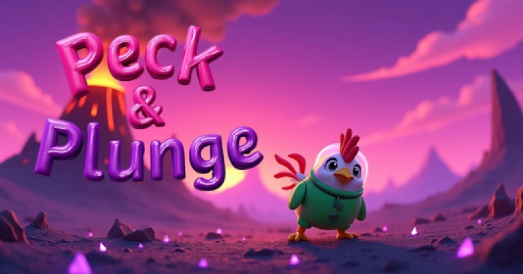Welcome to Peck & Plunge, an exciting and beautifully stylized flying challenge where a brave chicken takes flight through a volcanic sky glowing in shades of pink and gold. The volcano in the background slowly awakens, spilling streams of bright lava while the world trembles in a calm yet intense rhythm. Your mission is simple — guide your feathered hero safely between the towering columns and see how far you can go before gravity, lava, or obstacles bring your flight to an end.