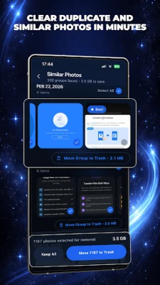 Running out of storage? Thousands of photos, duplicate videos, and large files can quickly fill your device. Photo Cleaner helps you find and remove unnecessary files so you can reclaim storage in seconds.
