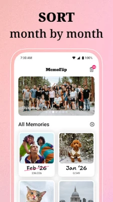 By grouping media files chronologically, this camera roll cleaner keeps photo libraries organized and supports efficient photo storage cleaner workflows.