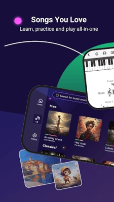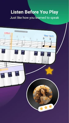 ‒ Play on a Real Piano: Dodo listens to your playing (acoustic or digital) through your device’s microphone, ensuring you hit the right notes at the right time.
