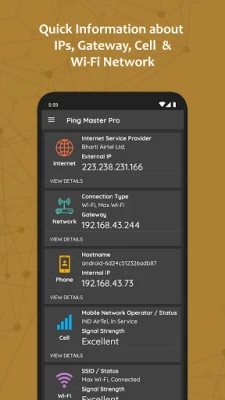✔ Get quick Information about Network IP's, Gateway, Cell and Wifi Networks
