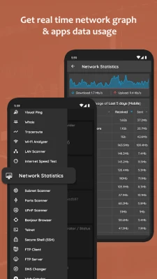 ✔ Get real time network data usage graph & data used by each app.