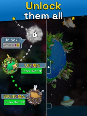 By simply tapping on the planet, you'll collect valuable coins and, bit by bit, increase the attraction to exciting objects flying around in space. If you're really clever, you'll use multiple fingers to collect coins even more effectively, to get the resources you need to build the planet as quickly as possible. However, Planet Evolution: Idle Clicker is not limited to just tapping, but also offers many exciting upgrades, special boosters and a unique prestige system to speed up your progress immeasurably and help you explore all areas of the universe.