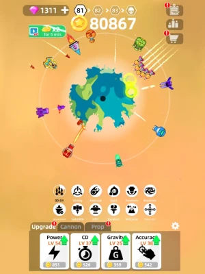 Collect your daily rewards & offline earnings and upgrade your weapons or skills. Additionally, Planet Smash features impeccable weapons that have different damage like the FLAME, ICE, LIGHTING, NUKE & more. Create your ultimate planet bomber attack with powerful upgrades to destroy even the largest planets!