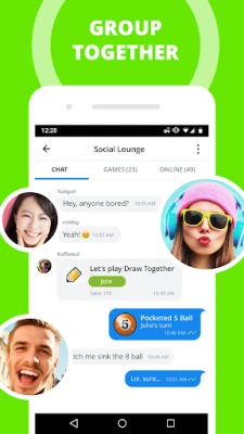 Ocho 8️⃣, Pool 🎱, Table Soccer ⚽, Werewolf (Mafia) 🐺, Ludo 🟠, Bowling 🎳, Mini Golf 🏌️, Darts 🎯, 4 in a Row ⭕, Skeeball 🕳️, Match Monsters 💎, Plox 👾, Chess ♟️, Backgammon ⚪, Checkers 🏁, Basketball 🏀, Archery, Cup Pong, Draw Together, Dice Party 🎲, Dominoes ◻️, Gin Rummy ♦️, Sea Battle 🛥️, Go Fish 🎣, Dots & Boxes ☑️, Bingo 🅱️, Minesweepers 💣, Reversi ⚫, Literati 🔠, Go ☯️ and many more.