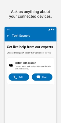 • Connect instantly with our U.S.-based tech pros via call or chat for support of all your connected devices, such as smartphones, printers, routers, game consoles, smart TVs, and thermostats.